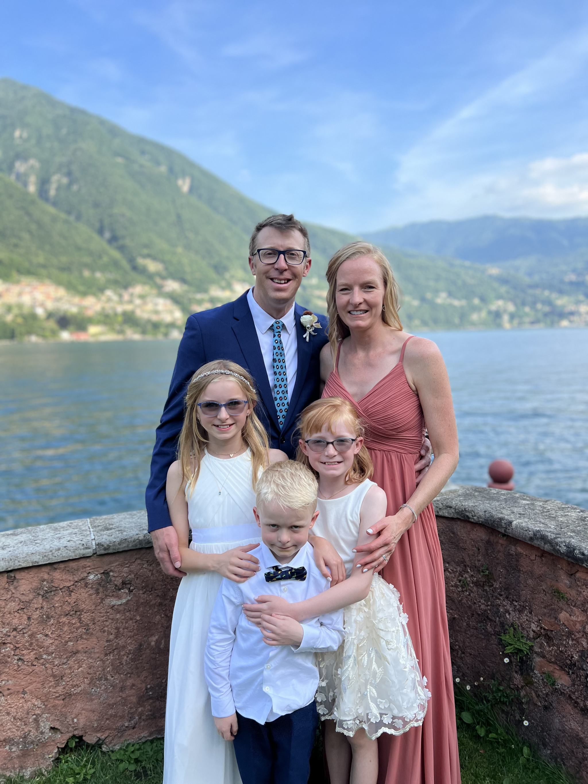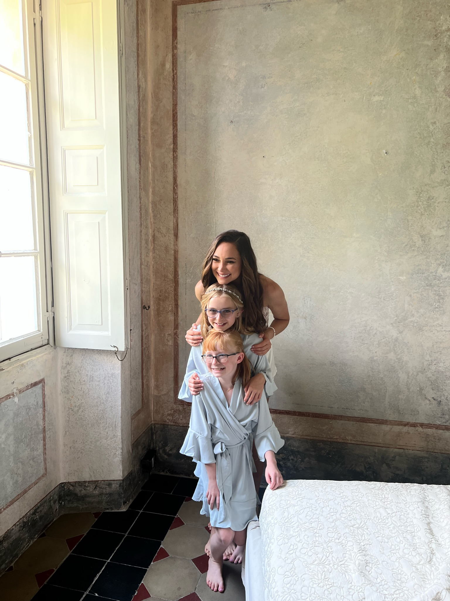 Our home in Como was known as The Secret Garden, which was the perfect place for us. We had plenty of room for everyone, including Alex’s sister, Erin. We were within walking distance of all the shops and restaurants and not too far from the lake. Many of the wedding party were staying at the Palace Hotel, but having a home like this allowed the kids to spread out and have a bit more space for fun.
